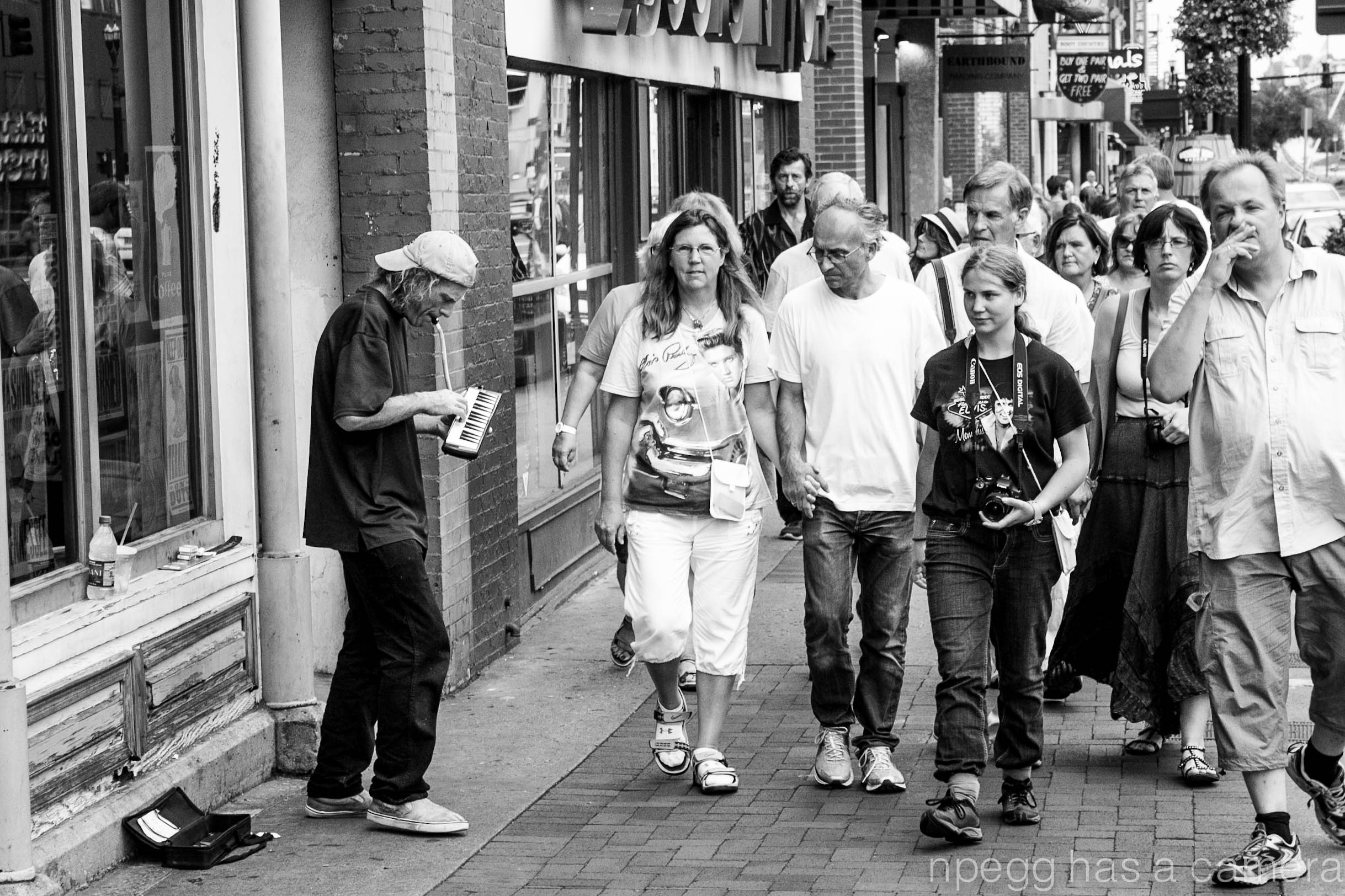 The above photo is a group of tourists fresh off a hotel shuttle bus cruising past one of the most talented musicians they have ever come within 10 feet of, but viewed as a homeless panhandler trying to survive. –