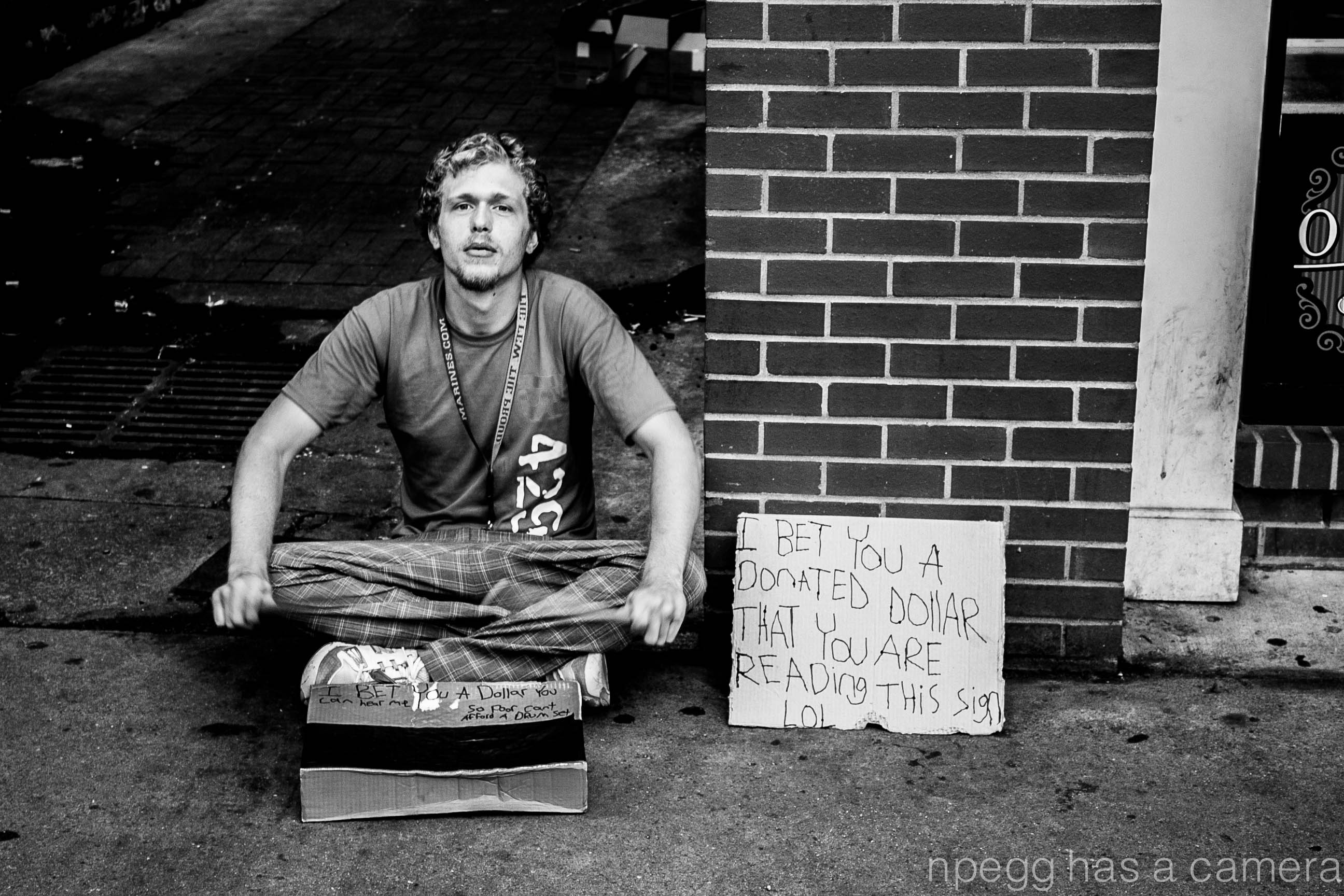 Well that’s one way to do it. – Again, I challenged myself to stop, point, focus and shoot the shot, trying to worry about what this guy thought. As you can tell he looked right into my eye through the lens as I took the shot. An overwhelming feeling came over me, as I’ve explained in previous posts, that I was raping this guy of his innocence by pointing the camera at him.