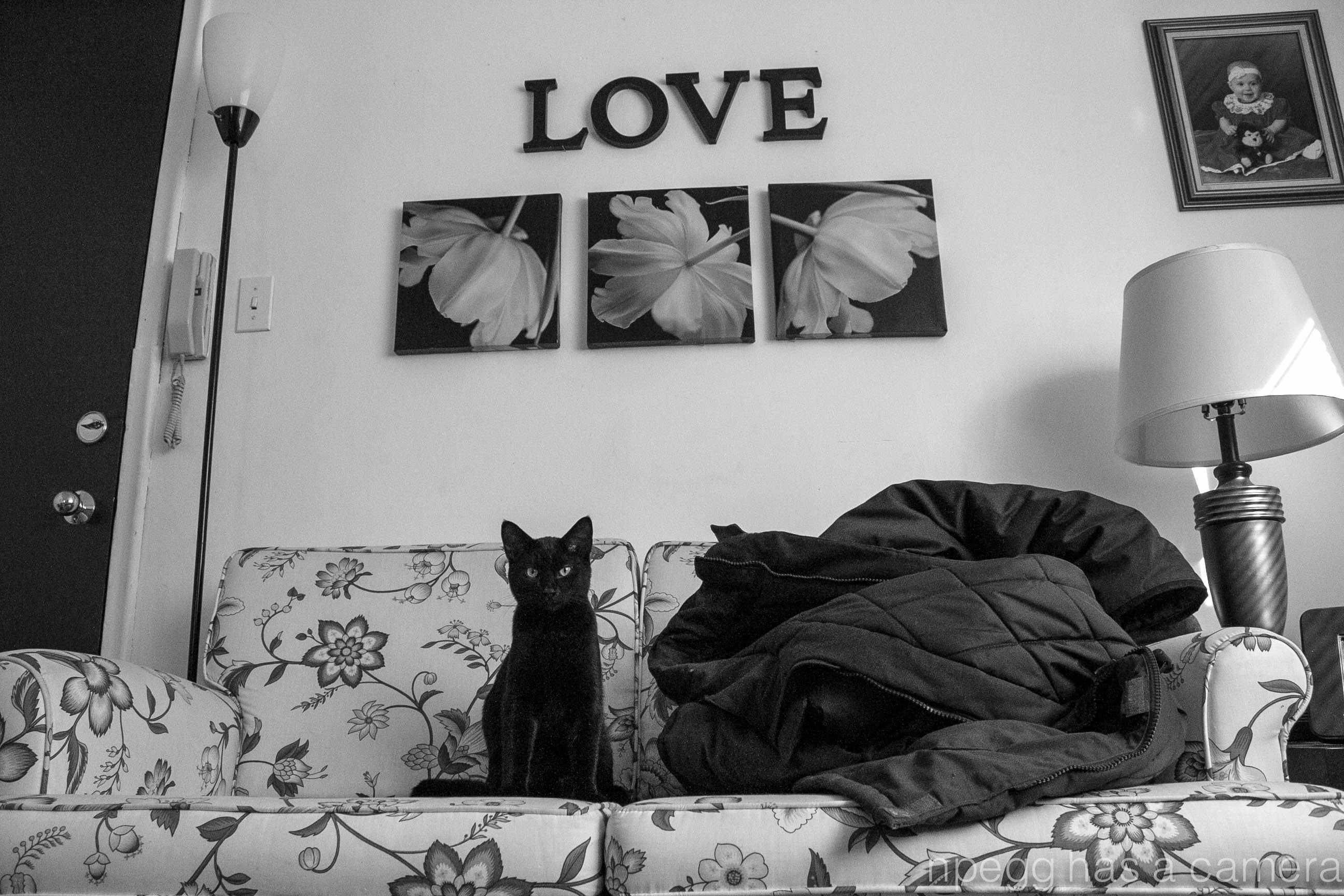 An Afternoon, playing the new Assassins Creed. I look to my right and see the cat waking up from it’s ever so famous…cat nap. I notice, My 60D sitting ever so graciously on the coffee table in front of me, arms reach away. I see the cat. I see the camera facing the cat. I reach for the power switch on the camera. I notice, the power is already on from an hour ago when I was flipping through some photo’s I took earlier that day. I gently press the shutter button to wake the camera from its famous.. sleep mode, catnap. I look at the cat, once more, as to not startle it in hopes it will continue to stare blindly in the same direction… – I slowly, and fearfully half press the shutter button now that the camera is fully on. I say fearfully because oh the beep it will make when it Auto-Focus’s on the couch front… This is where it all goes wrong. – The beep… Never came… meaning only one thing, Or two if you are a defeatist. It, means/meant that the camera lens was set to (duhn duhn duhhhnnnn) Manual Focus…..