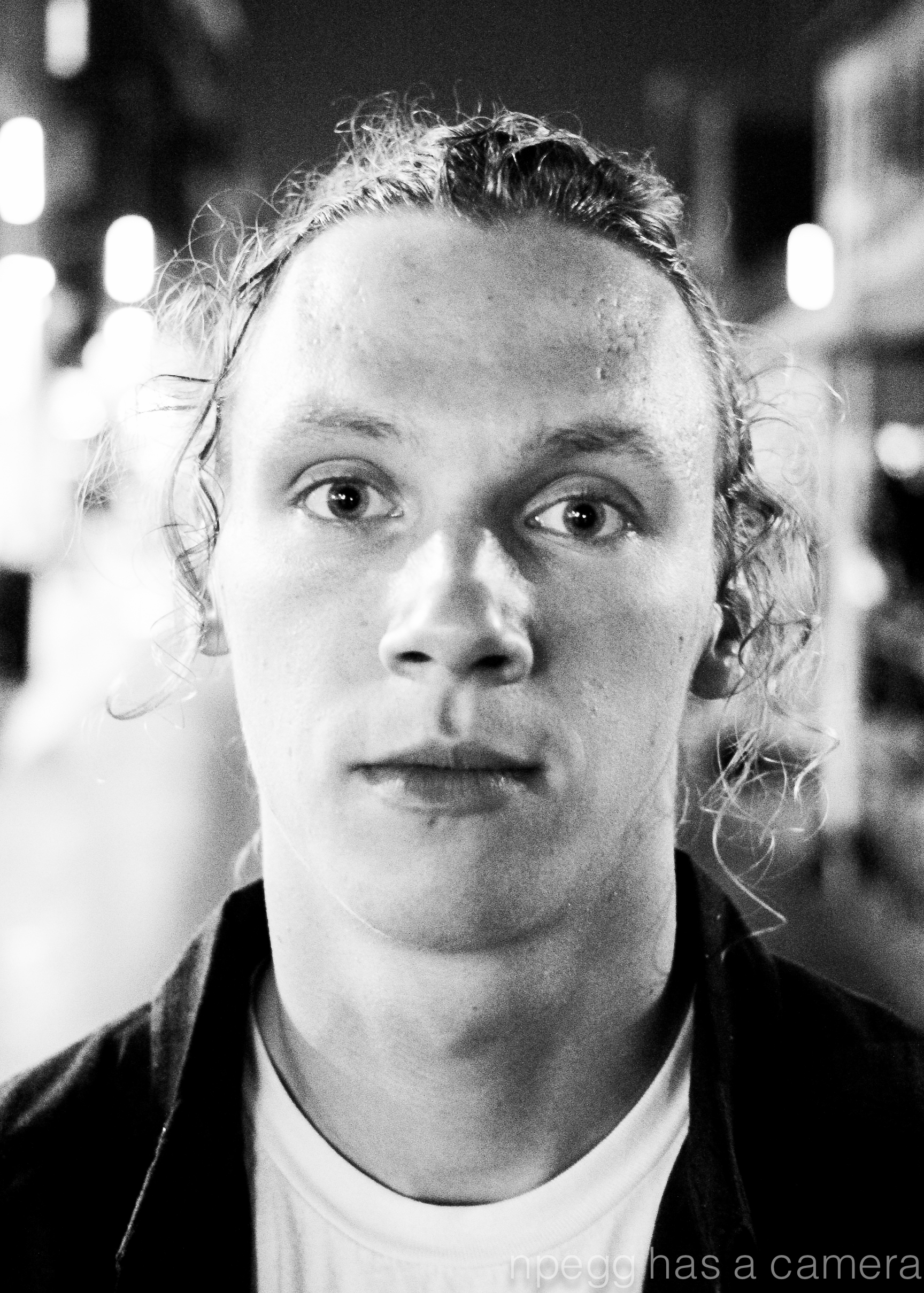 After a music fest, in the rain I started taking pictures of my friend Nathan. – Sporting the metal concert greasy pulled back man bun, I told him to stand in the middle of the street so I could take is portrait.