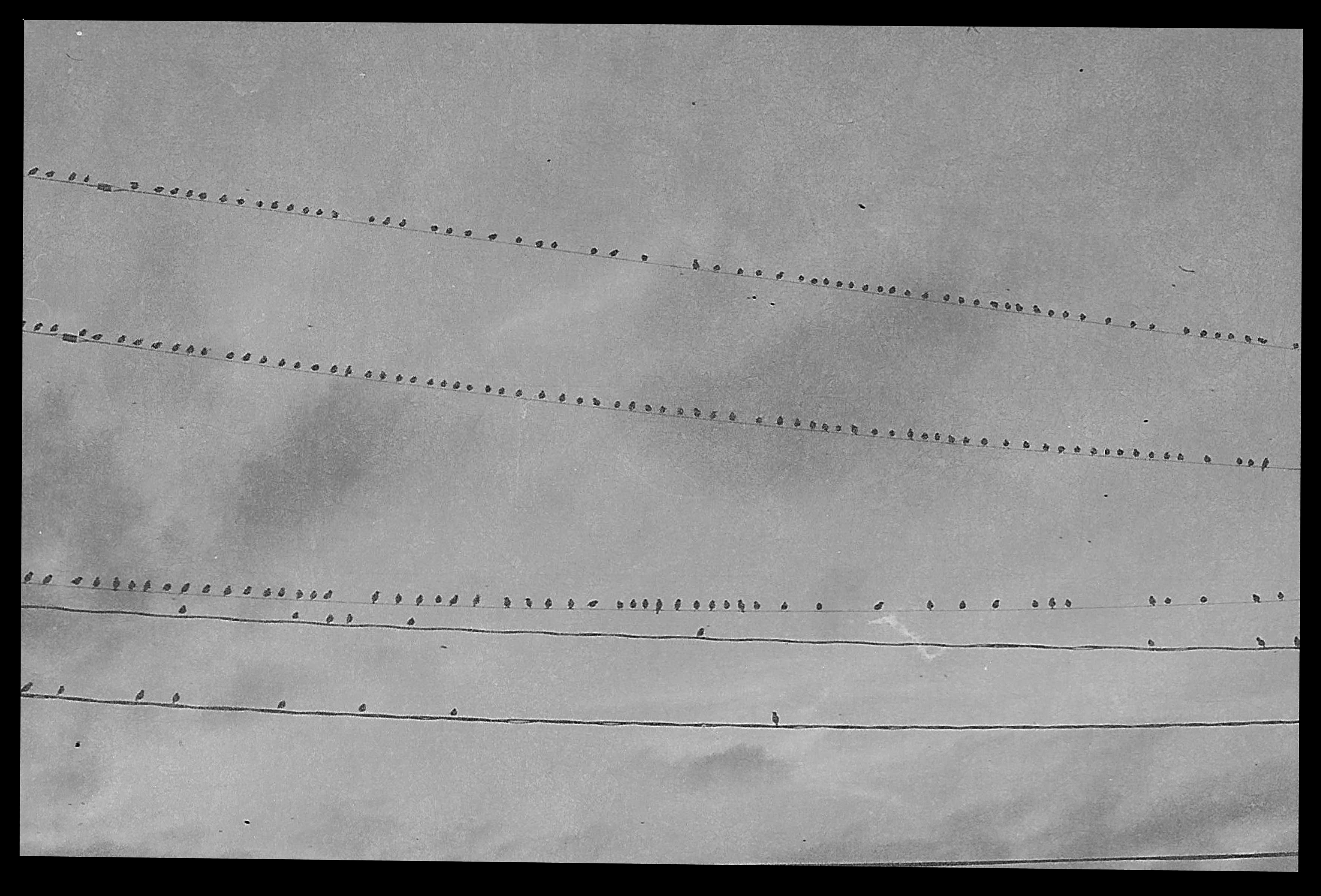 The picture is of some birds on a wire.